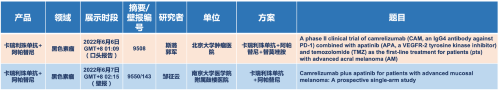 在黑色素瘤领域,AG百家乐官网医药的卡瑞利珠单抗联合阿帕替尼(“双艾”组合)在2022 ASCO共入选1项口头报告和1项壁报展示。